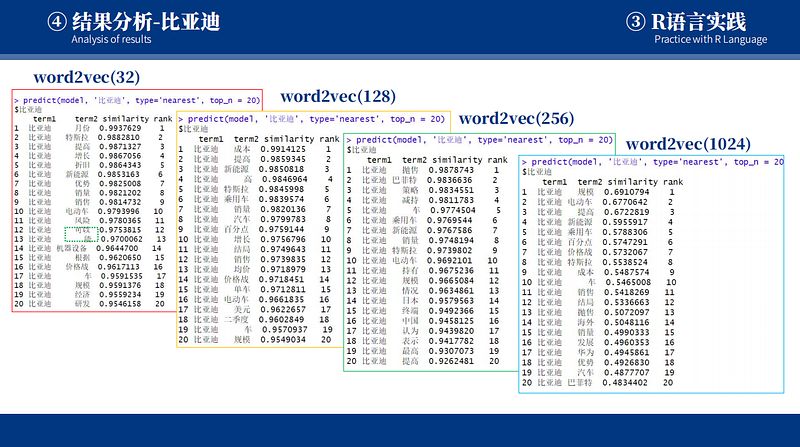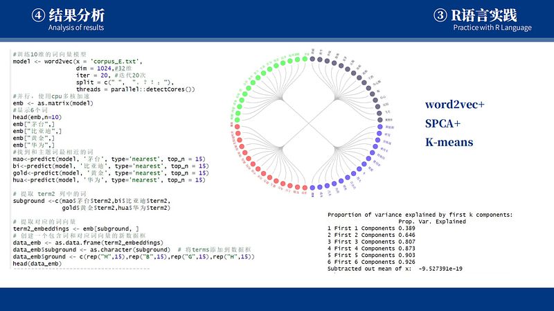 A document term frequency matrix (DTM) was created, and the number of occurrences of each word in each document was obtained. The code was used to extract the top eight most frequent terms in each document and construct a new matrix to reduce data sparsity while retaining important features. A text model was trained using the word2vec method, with the input data being the text file named corpus_E.txt. The model's word embedding dimension was 1024, and the number of iterations was 100. The predict function was used to find the top 20 words with the closest lexical connections and record their embedding vectors. The top 20 words of the same topic were grouped together.